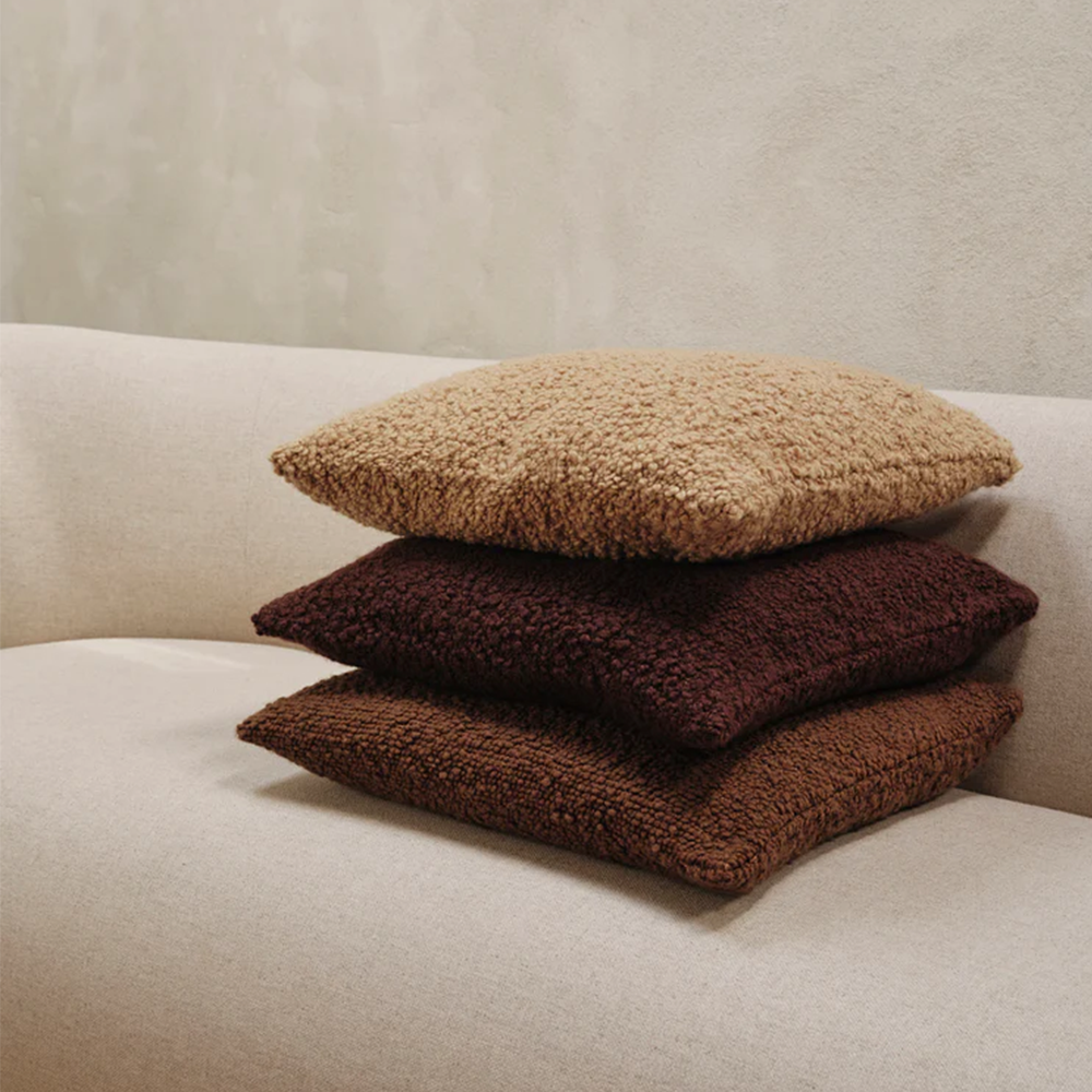 Moor 부클레 쿠션은 울과 코튼 부클레 소재를 믹스해