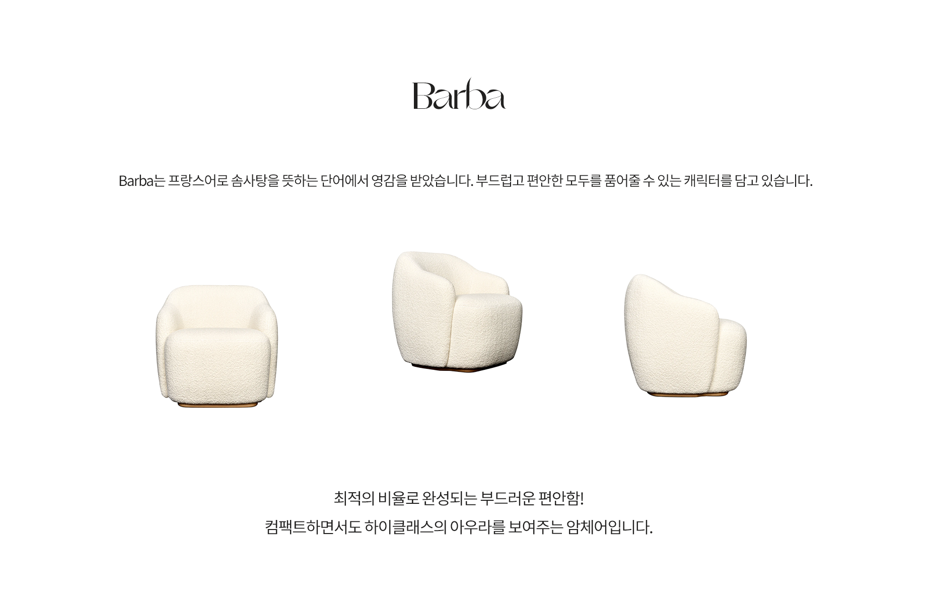 편안하면서도 콤팩트함! 하이엔드 라운지 체어의 매력을 Barba를 통해 만나보세요.