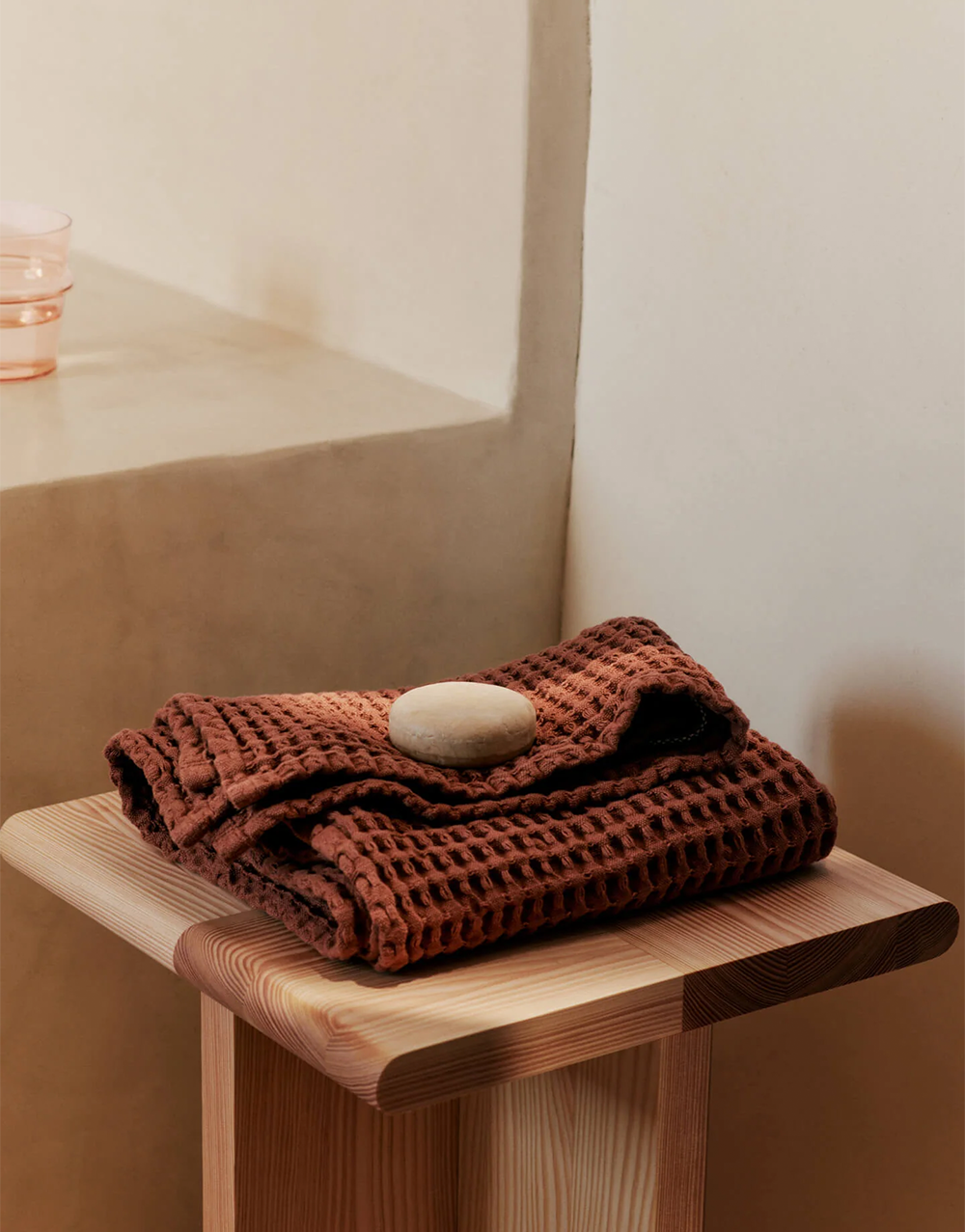 부드러운 와플 조직과 차분한 어스톤 컬러,