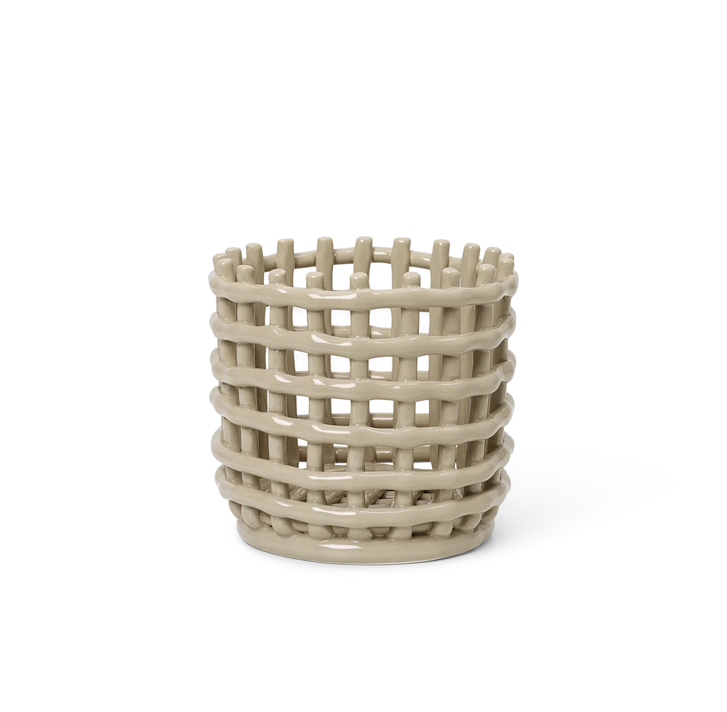 전통적인 바구니 짜기 기술을 도자기에 접목한 펌 리빙의 핸드메이드 세라믹 바스켓은 짜여진 용기의 친숙한 느낌을 재현합니다. 과일이나 빵 바구니로 이상적이며, 어떤 테이블 세팅에서든 시선을 사로잡음과 동시에 안정감을 주는 오브제 역할을 톡톡히 합니다. 핸드메이드로 조각했기에 모든 조각은 살짝씩 다를 수 있으며 정형화되지 않아 더욱 예술적으로 소장하실 수 있는 작품입니다.
