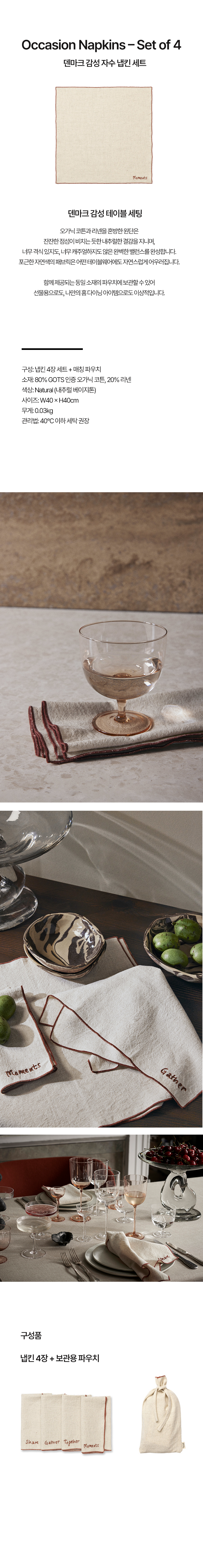 포근한 자연색의 패브릭은 어떤 테이블웨어에도 자연스럽게 어우러집니다.