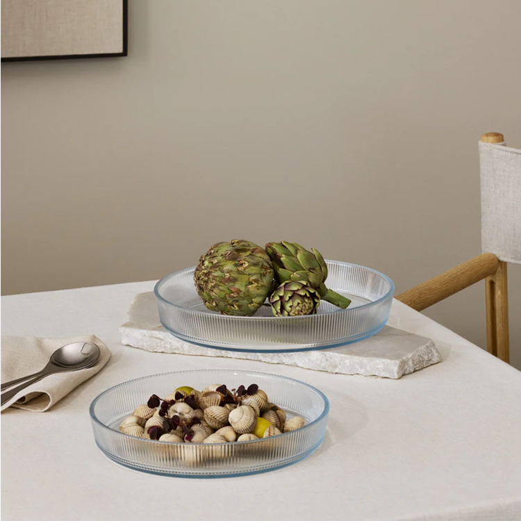 Point 2. Art Deco Vibe (우아한 주름): 프란시스 케이우트가 디자인한 표면의 그루브(Ribbed pattern)는 1920년대 아르데코 양식을 닮았습니다. 요리의 단면을 가장 아름답게 보여주는 '필터' 역할을 하죠.