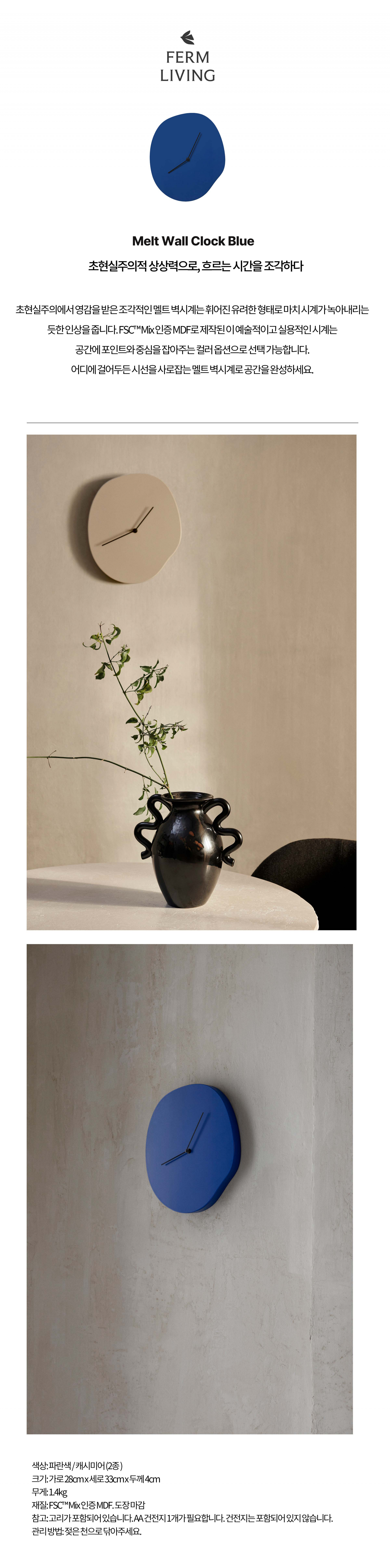 [Ferm Living] Melt Wall Clock Blue 펌리빙 멜트 벽시계 블루