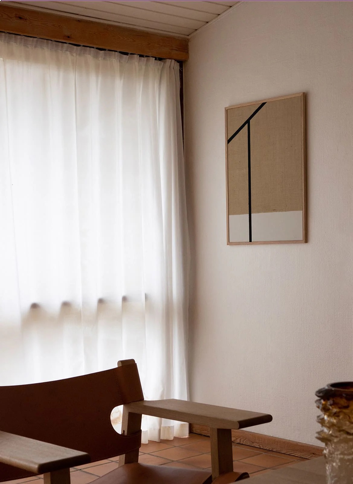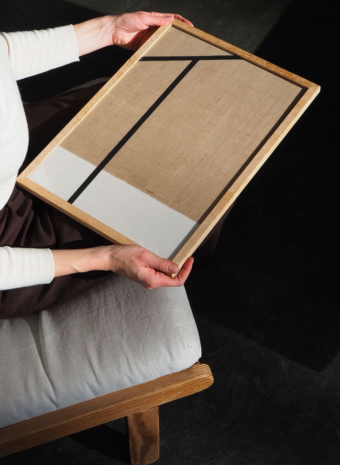 드 스틸(De Stijl)의 조형 언어를 패브릭으로 재해석하여, 형태와 색채의 본질만을 담백하게 남겼습니다. 자투리 원단을 이어 붙인 거친 가장자리와 미세한 실오라기의 질감을 생생하게 포착해, 종이 위에서도 실제 천을 만지는 듯한 촉각적인 깊이를 선사합니다. 단순하지만 결코 지루하지 않은 텍스처의 미학으로, 공간에 시대를 초월한 모던한 무드를 더해보세요. (No. 66과 67을 나란히 배치하면 감각적인 라인이 더 살아납니다)