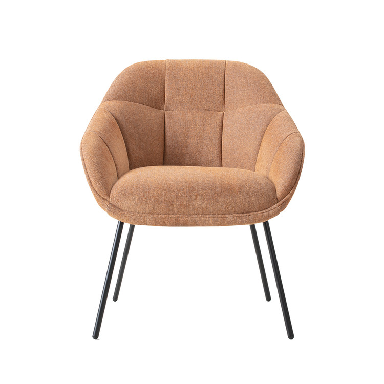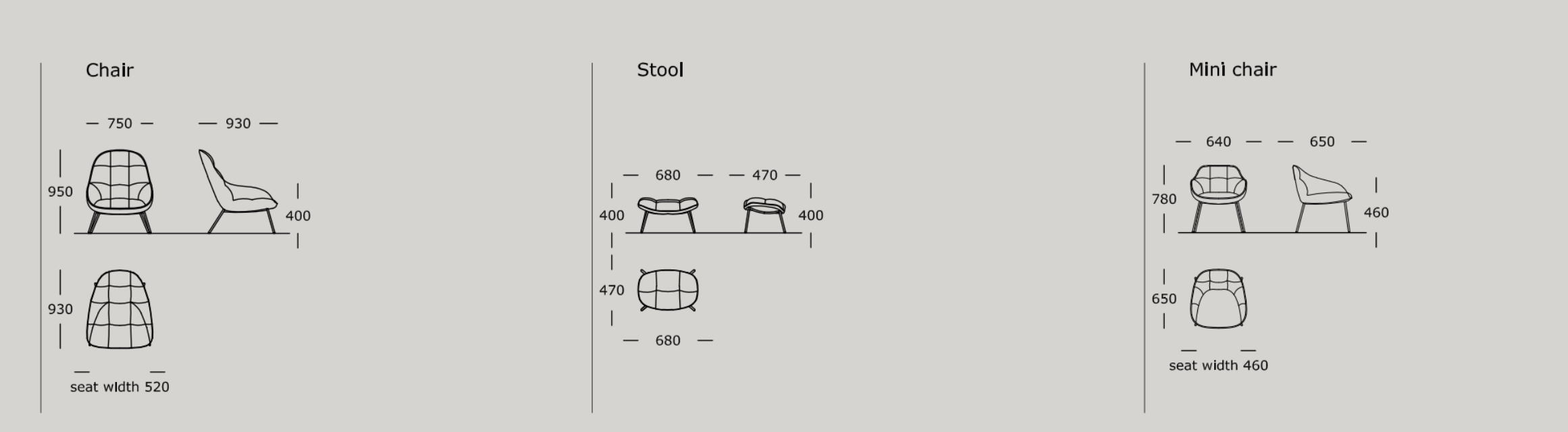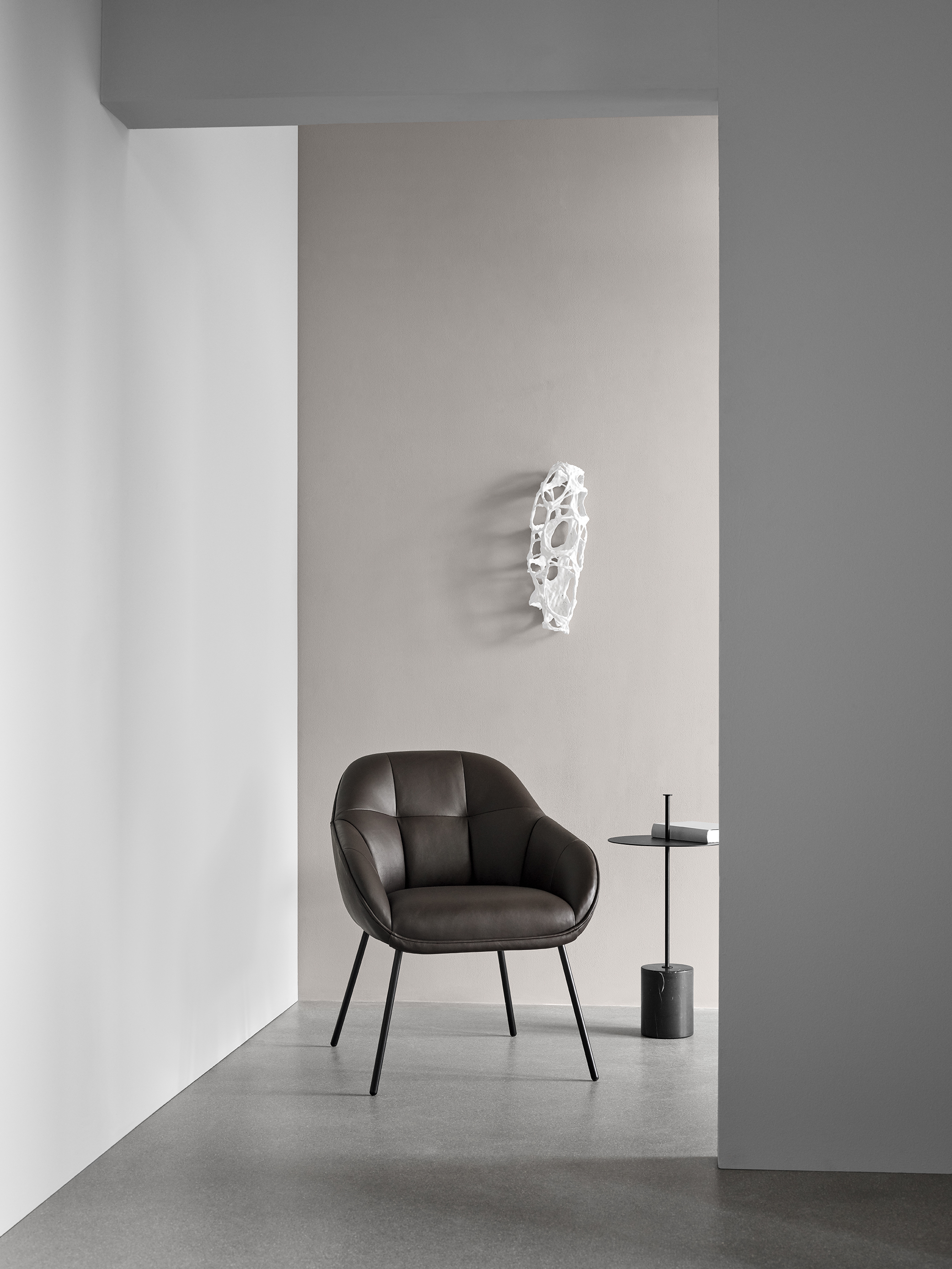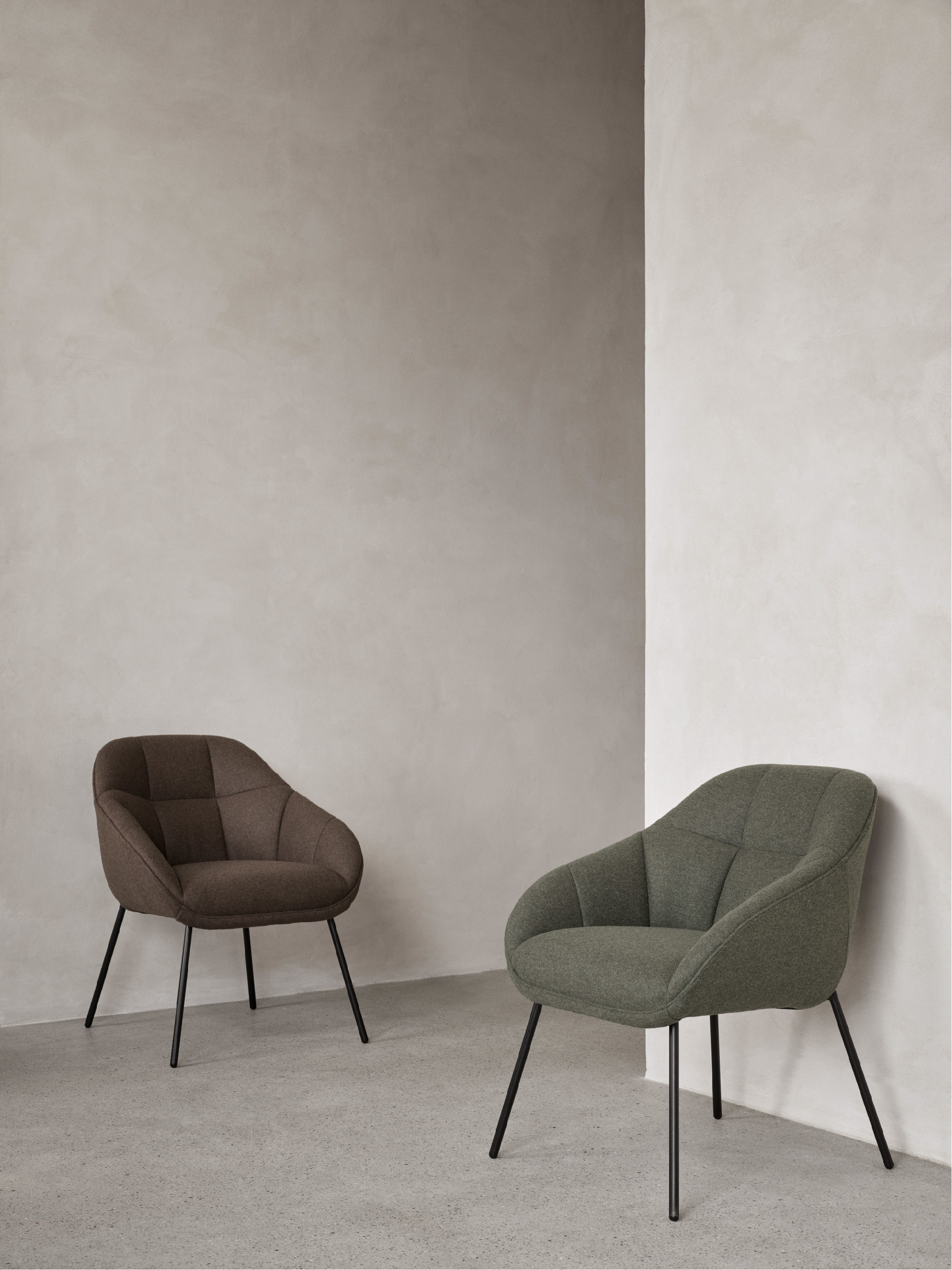시각적으로 작은 체어의 넉넉한 폼 레이어는 등과 허리에 안정적인 지지대 역할을 해주기에 자세가 늘어지기보다는 제대로 된 착선 자세를 만들어줍니다. 블랙 파우더 코팅된 스틸 소재의 슬림한 다리는 미니멀한 터치로 풍부하고 디테일한 실내 장식과 균형을 이룹니다.