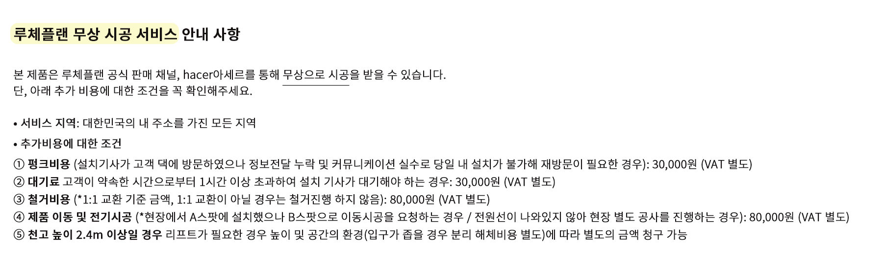 - 시공: 무료 시공 지원 (정품보증) *구매 전 시공 관련 안내를 꼭 받아보세요.