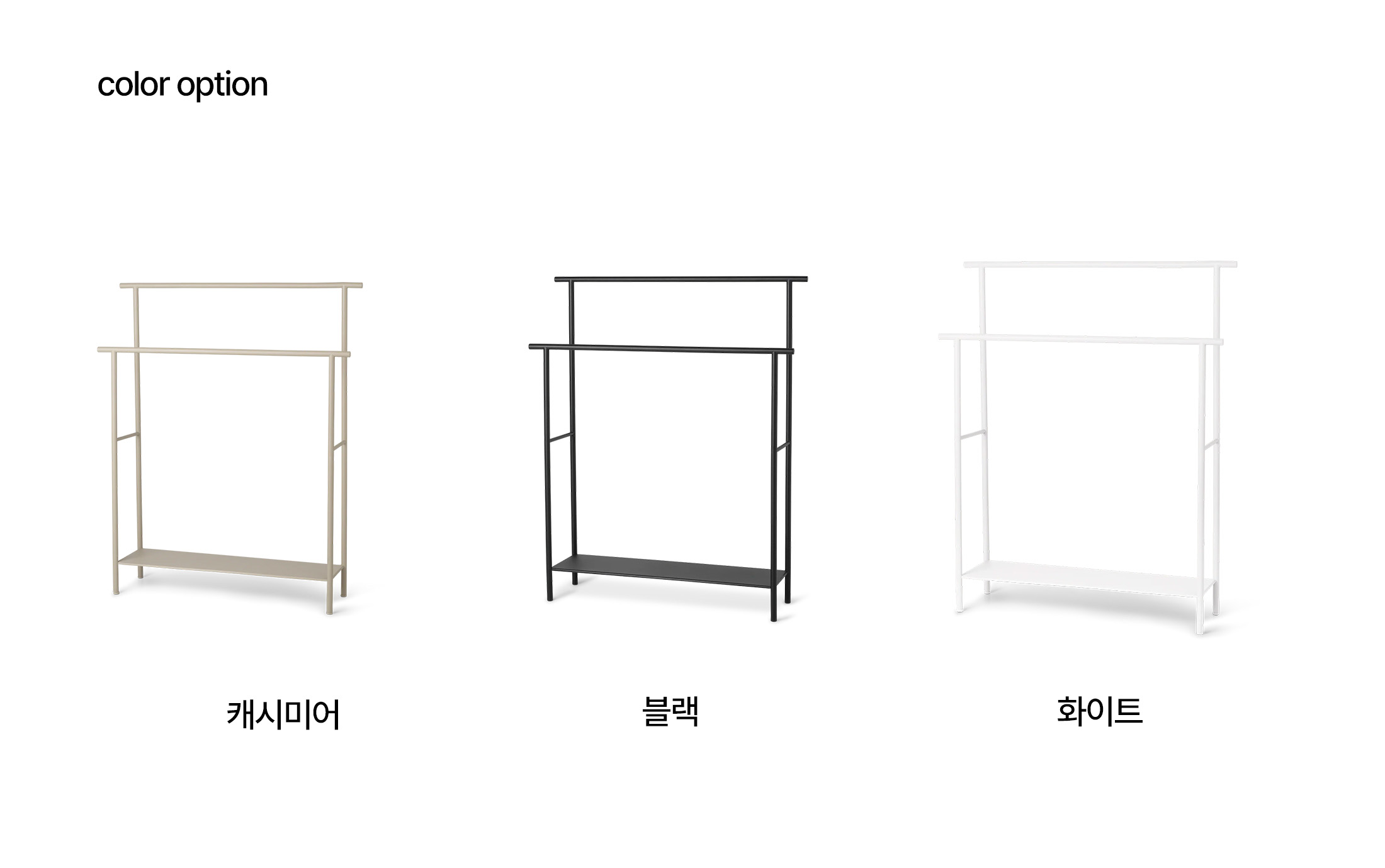 파우더 코팅된 금속으로 제작된 이 제품들은 단순하면서도 실용적인 디자인이 특징이며, 녹에 강해 습기가 많은 환경에서도 사용하기에 적합합니다.