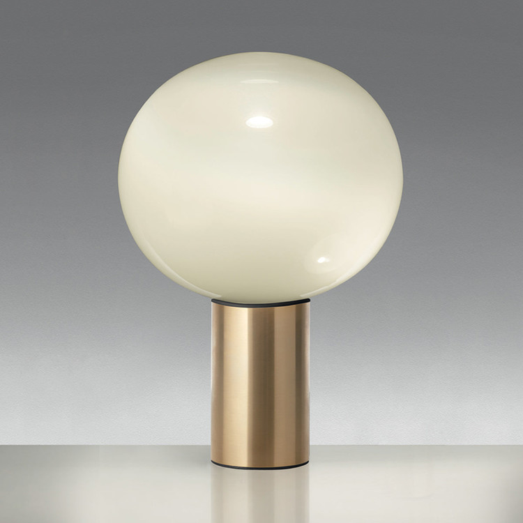 Laguna 테이블은 베이스가 돌출된 구형 테이블 램프로 테이블 상판에 부드럽게 확산되는 빛을 제공하고 주변 환경에 따뜻한 빛을 비춥니다. 현대적이고 우아한 테이블은 알루미늄 베이스에 장인이 직접 불어 수공예로 제작되었습니다.