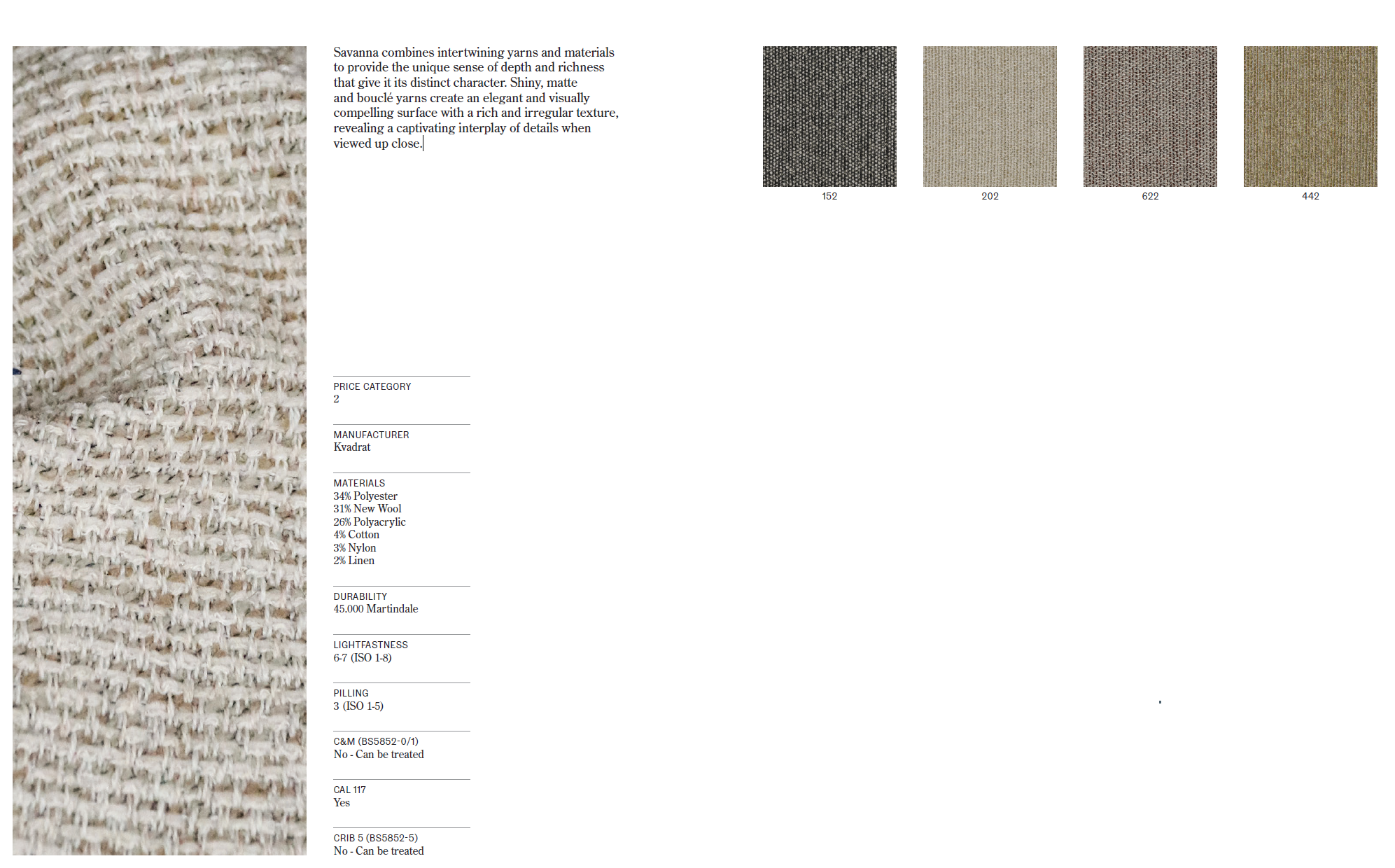 Option ⑤ Savana 사바나: 독반짝이면서도 우아한 사바나 패브릭은 독특한 개성으로 일반적인 부클레 원단보다 유니크함을 선사해주는 패브릭입니다.