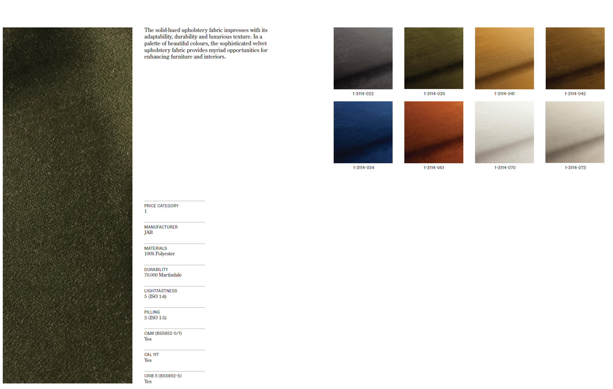 Option ③ Champion 챔피온: 촉감은 물론 시각적으로도 인상적인 이 원단은 고급스러운 텍스쳐와 내구성을 모두 만족시키는 벨벳 느낌의 패브릭입니다.