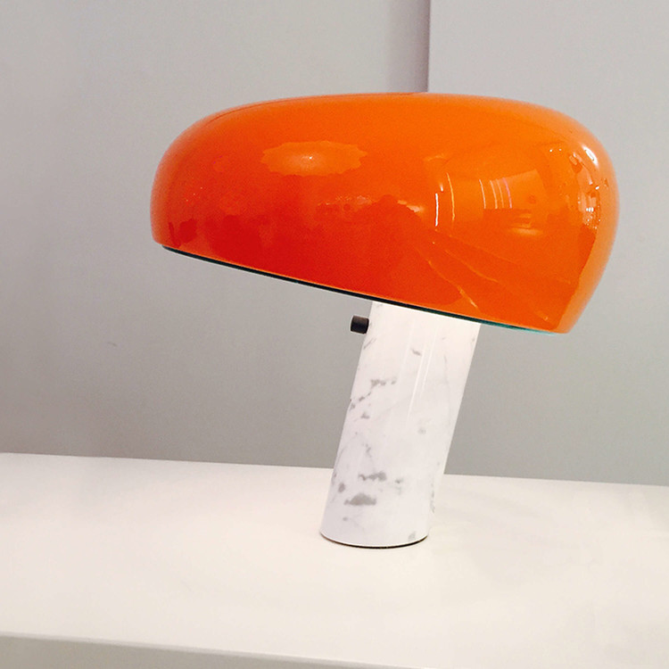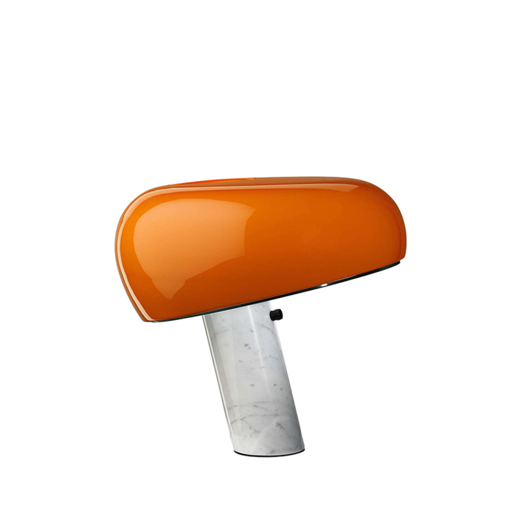 Achille과 Pier Giacomo Castiglioni가 1967년에 디자인한 스누피 조명은 Flos의 아이콘이 되는 대표적인 작품입니다. 에나멜 처리된 금속 반사판과 고급스러운 대리석 베이스로 키치한 라인과 무게감을 함께 지니고 있습니다.