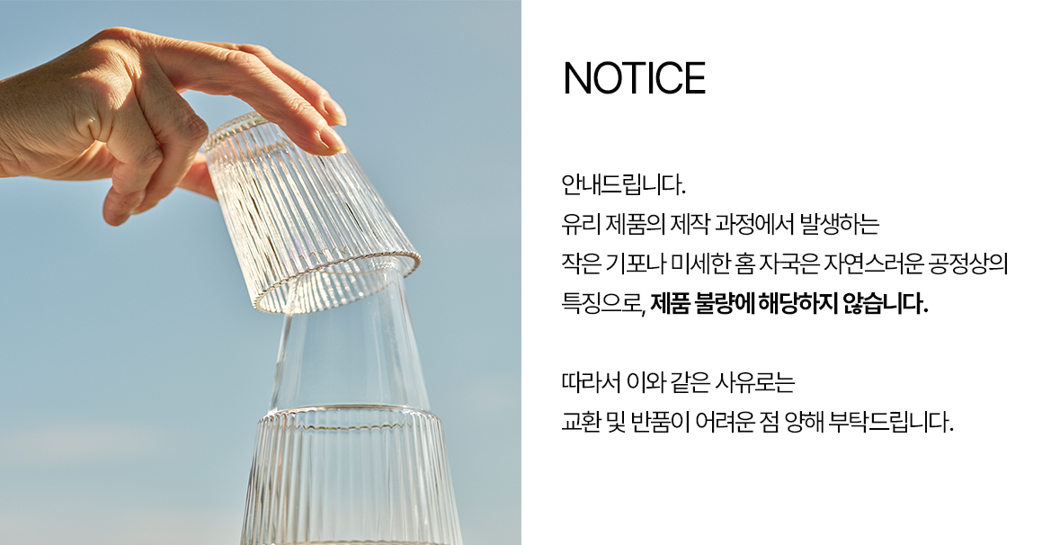 제품 특성과 생산 공정에서 위와 같은 특징이 발견 될 수 있으며, 이는 교환이나 반품 사유에 해당 되지 않는 점 안내드립니다.