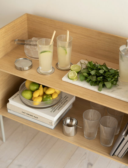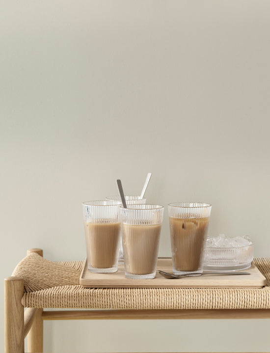 디자인은 1920년대 아르데코 스타일에서 영감을 얻었으며 유리에 파진 단순하지만 우아한 홈은 무엇을 담아도 아름답게 보여줍니다.