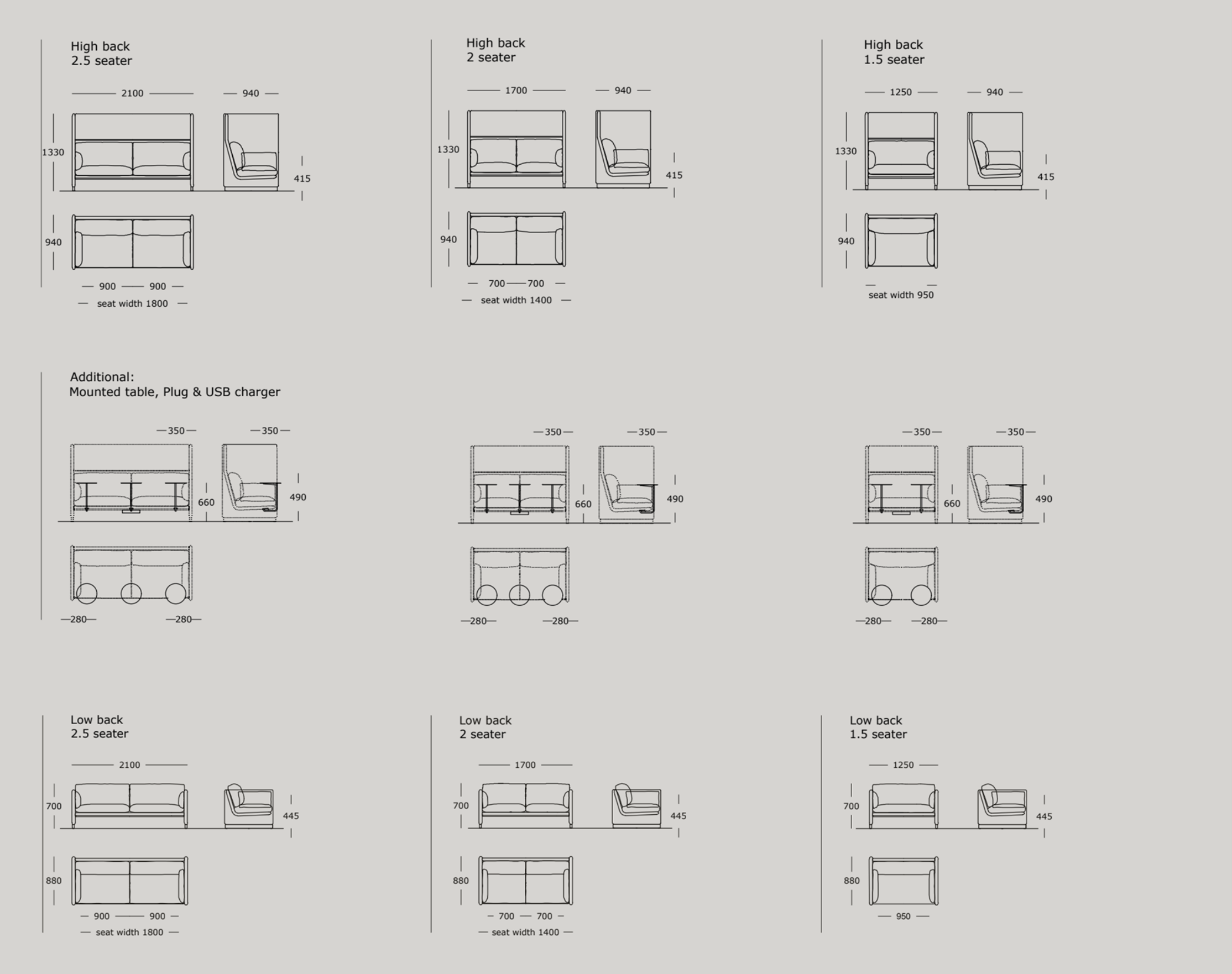High Back: 1.5 str. / 2 str. / 2.5 str.
