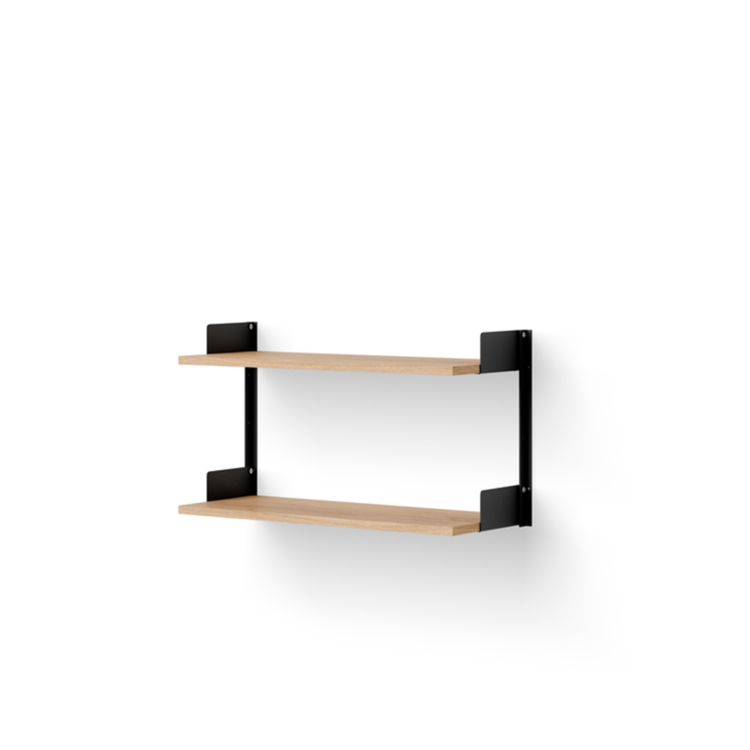 Shelves in oak veneer, support in aluminium and steel