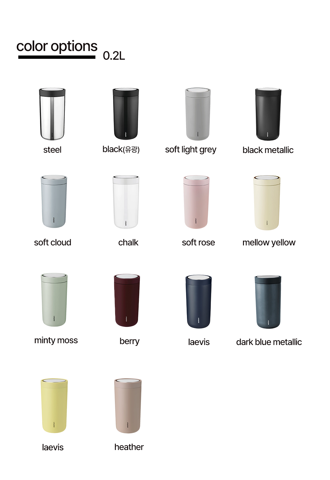 컬러: Black, Soft Rose, Soft Cloud, Dark Blue Metallic, Black Metallic, Soft Light Grey, Steel, Chalk, Mellow Yellow, Berry, Laevis, Heather, Minty Moss