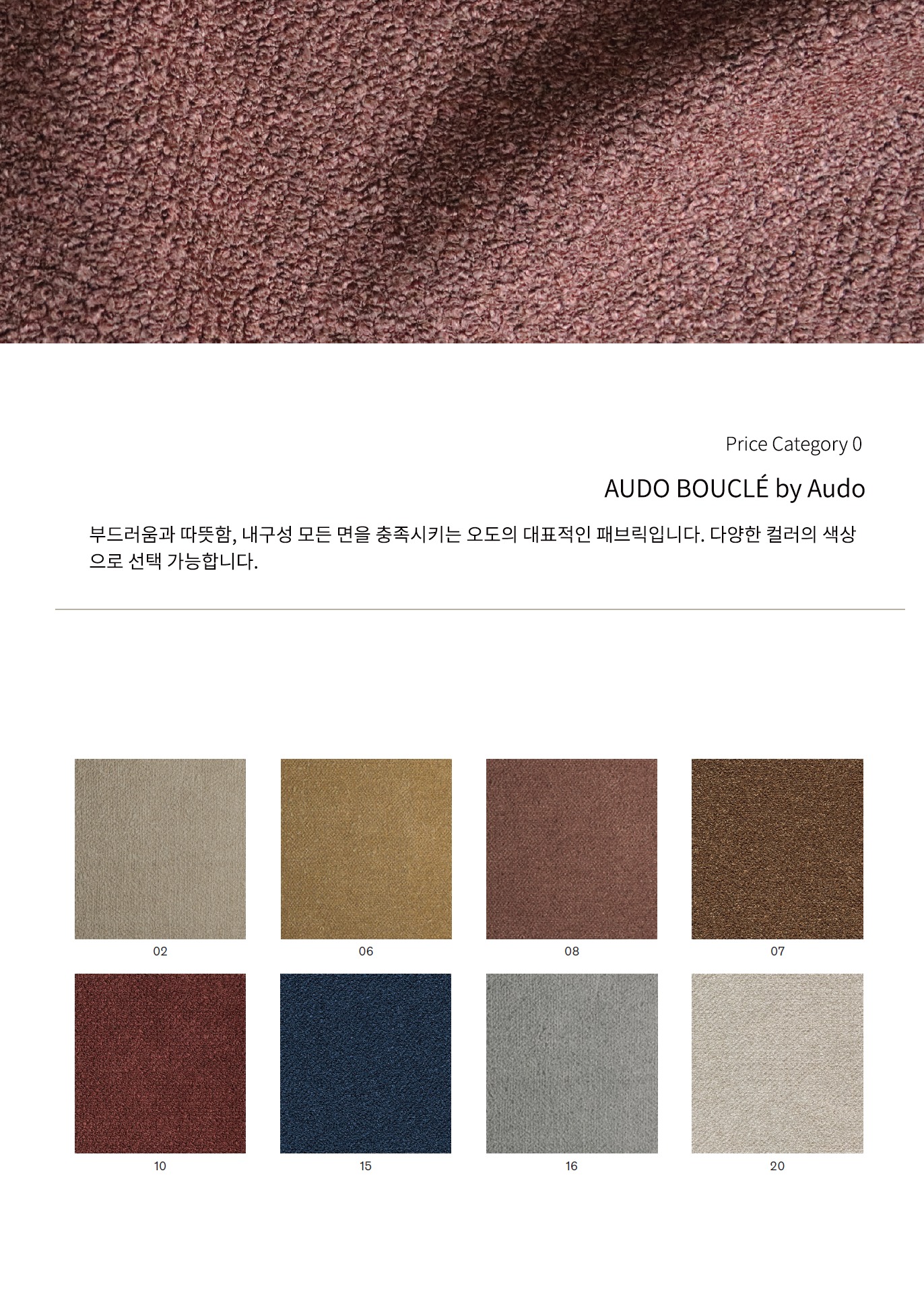 제품 가격은 패브릭 Audo Bouclé 제품의 가격입니다. 패브릭 변경에 따른 가격 차이가 발생할 수 있습니다.