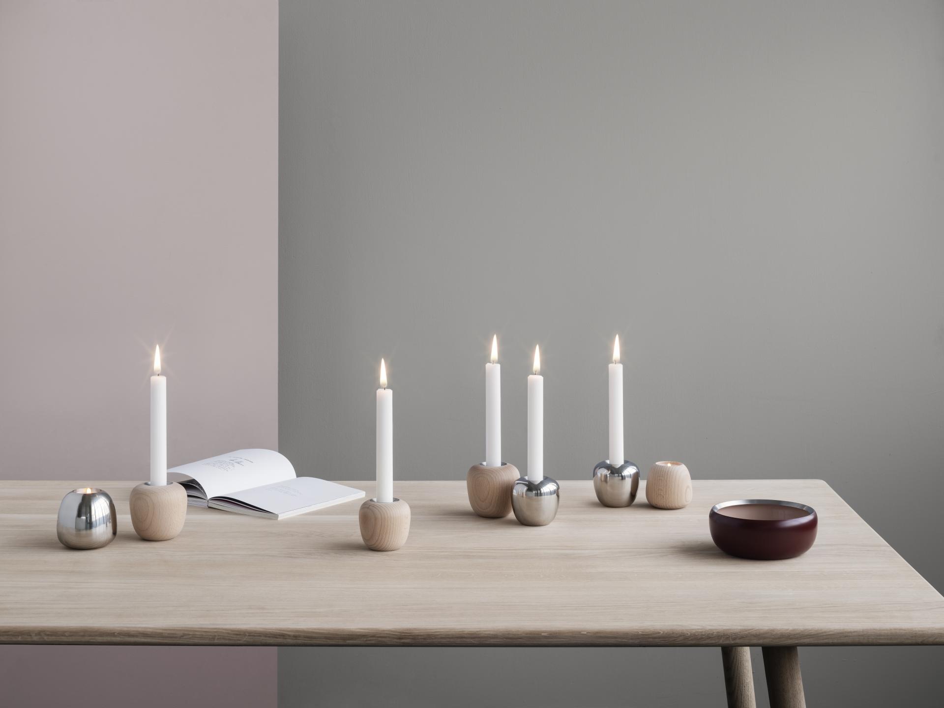 서로 다른 두 가지 소재로 완성된 캔들홀더는 뒤집는 방향에 따라 티라이트 또는 디너 캔들을 모두 사용할 수 있는 구조로, 쓰임에 따라 유연하게 형태를 바꿉니다.