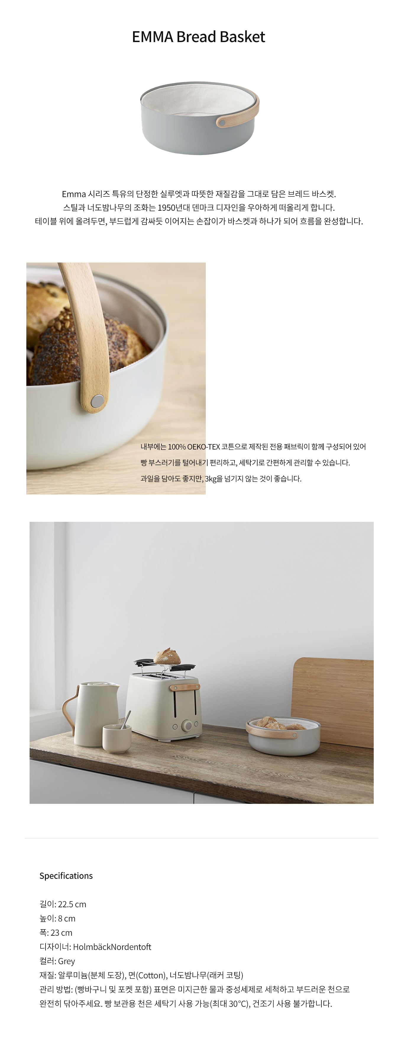 - 관리 방법: (빵바구니 및 포켓 포함) 표면은 미지근한 물과 중성세제로 세척하고 부드러운 천으로 완전히 닦아주세요.